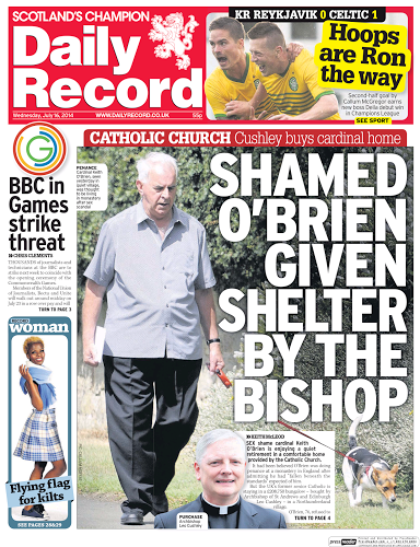 Preguntado sobre la propiedad en donde vive actualmente, dijo: “Necesitarán revisar eso con la diócesis. No hablo de eso, no me está permitido hablar acerca de eso.” Un portavoz de la Diócesis de Edimburgo dijo: “Algunos clérigos retirados tienen acomodación comprada para su uso aunque esas propiedades siempre son de propiedad de la diócesis. Este es el saco con la casa arreglada para el Cardenal O’Brien. Su locación está en consonancia con el acuerdo entre él y la Santa Sede. Los detalles de la transacción son materia de registro público y el precio estuvo dentro del margen de costo de otras compras de casas para clérigos retirados.” ¿Quién es…Keith O’Brien?