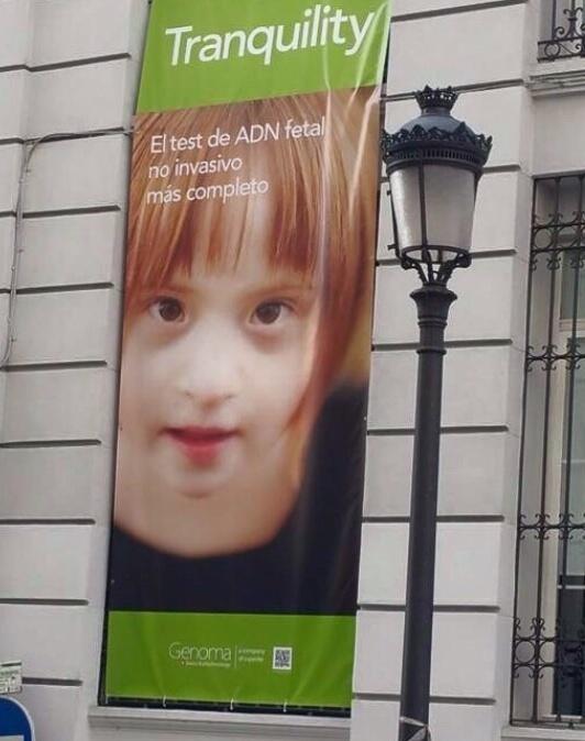 Un anuncio de Genoma aparecido en Madrid y denunciado por varios tuiteros causa repugnancia a cualquiera con un mínimo de sensibilidad. Genoma es una empresa suiza que, como los nazis de hace unas décadas, ayudan a los padres a seleccionar cuáles de sus hijos tienen derecho a vivir y cuáles no, y lo hacen comercializando un test prenatal que llaman «no invasivo», para el diagnóstico precoz de anomalías cromosómicas, con el macabro reclamo publicitario de la imagen de una preciosa niña con Síndrome de Down que a juicio de los mercaderes de la muerte de Genoma no debería haber nacido. La empresa, radicada en Ginebra, comercializa además multitud de tests para el bienestar de los bebés, siempre bajo el paradigma que ya denunciaba el P. Sanahúja en INFOVATICANA: «El ciudadano del nuevo orden mundial es el sano y productivo», y es que parece que los que no encajan en los cánones de perfección de los nuevos nazis del siglo XXI quitan la «tranquility» a sus padres. En la página web de Genoma se puede ver la descripción técnica del producto, al que califican de «fácil, seguro, preciso y temprano».