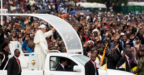 El Papa saluda a los cristianos de Uganda desde su Papamóvil