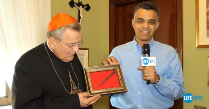 El cardenal Raymond Leo Burke ha recibido en persona el premio Law of Life Achievement Award, otorgado a aquellos que han sufrido en la lucha por la defensa y la protección de la vida y la familia.