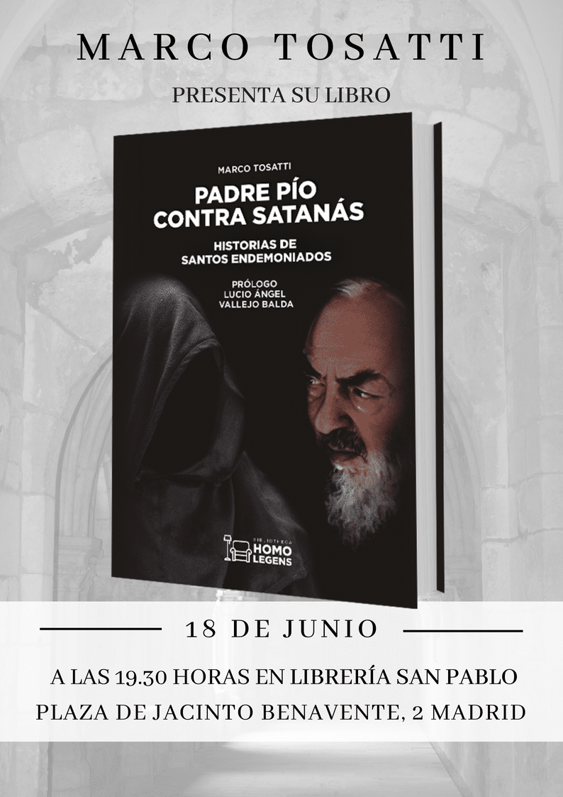 El próximo 18 de junio, el reconocido vaticanista Marco Tosatti presentará en Madrid su libro Padre Pío contra Satanás, publicado en España por la editorial Homo Legens. El acto tendrá lugar a las 19.30 horas en la Librería San Pablo de la Plaza de Jacinto Benavente de Madrid.