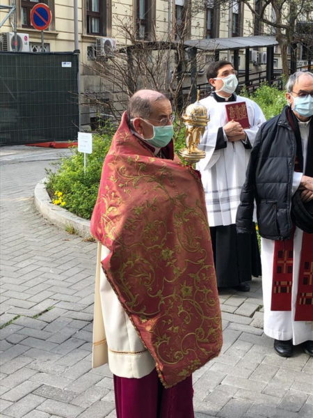 El miércoles 25 de marzo, en la fiesta de la Anunciación, el arzobispo de Milán, Mario Delpini, realizó una procesión con la Eucaristía en las calles aledañas a un hospital, tras lo cual entró en él para bendecir a los enfermos.