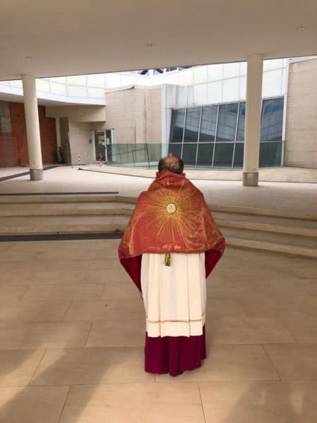 El prelado iba acompañado de algunos acólitos, todos con mascarilla.