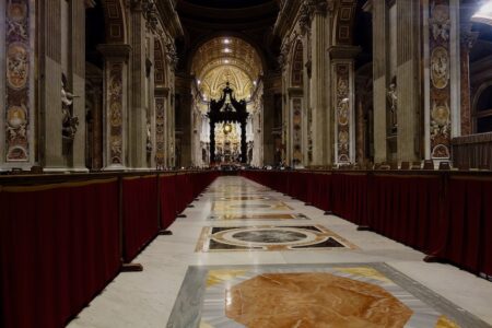 La construcción de la actual basílica, sin embargo, no comenzó hasta abril de 1506. Se completó en noviembre de 1626. Esos 120 años pueden parecer mucho tiempo para edificar una basílica, pero Notre-Dame de París llevó seis décadas más, y la Sagrada Familia de Gaudí en Barcelona comenzó hace 143 años y aún no está terminada.