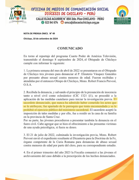 2. Miente la Diócesis de Chiclayo (comunicado público)