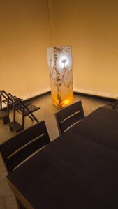 La capilla parece concebida deliberadamente como negación. Una sala de paredes lisas, iluminación cálida y uniforme, más propia del reservado de un restaurante de diseño que de un templo. En el centro, una mesa larga de madera oscura, rodeada de sillas, como preparada para una una reunión. No hay orientación, no hay eje, no hay tensión simbólica. El Santísimo queda reducido a una pieza vertical iluminada, arrinconada al fondo, casi como el armario en el que se guardan los cubiertos, más cercano a una lámpara conceptual que a un sagrario. El texto grabado, la luz interior, todo remite a un lenguaje estético contemporáneo que busca acompañar sin presidir.