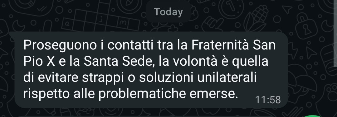 «Continúan los contactos entre la Fraternidad San Pío X y la Santa Sede; la voluntad es evitar rupturas o soluciones unilaterales respecto a las problemáticas surgidas.»