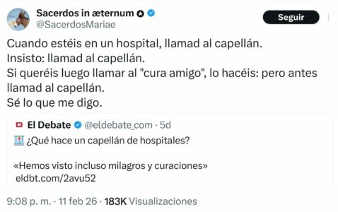 Infovaticana puso en conocimiento del Arzobispo de Valencia Monseñor Enrique Benavent los hechos el pasado 22 de octubre de 2025, así como en el transcurso de estos últimos días. Antes de hacer pública cualquier información que pueda hacer daño a las almas, se actuó conforme a un criterio elemental de prudencia y justicia: advertir al afectado y advertir a su obispo, concediendo la posibilidad de aclaración y de rectificación. Que el sacerdote Borja Escrivá, como @SacerdosMariae, siga dedicándose a explicar a decenas de miles de seguidores en redes su pastoral con niños enfermos y actúe como influencer polémico es un escándalo difícil de digerir y un riesgo de escándalo que debería haberse evitado.