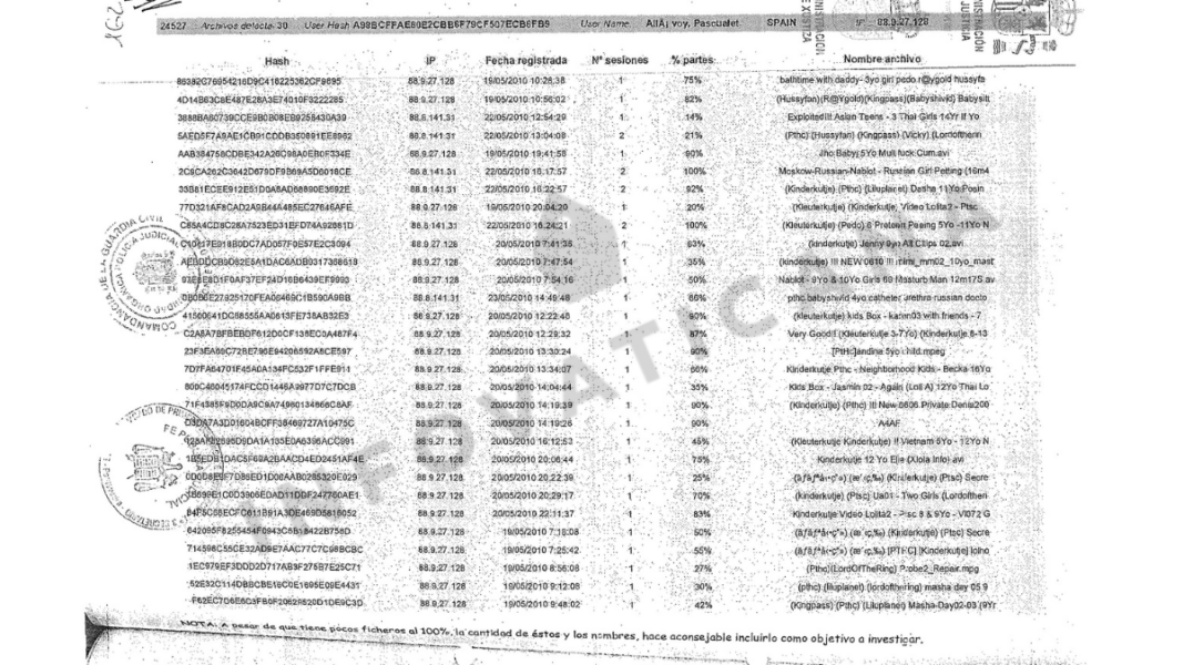 En el año 2010, en el marco de la operación contra posesión y distribución de pornografía infantil denominada “operación Telémaco”, el Juzgado de Instrucción nº 3 de Cangas incorporó un detallado informe realizado por el equipo de delitos telemáticos de la Guardia Civil con una serie de registros de descargas realizadas a través de redes P2P por usuarios españoles. Tal y como en su momento trascendió a medios públicos, uno de los usuarios que descargó este material se ubicaba en la parroquia de San Jaime Apóstol de Algemesí (Valencia). En la documentación judicial consta que el equipo informático desde el que se efectuaron dichas descargas estaba protegido por contraseña y vinculado al entonces vicario parroquial Francisco de Borja Escrivá Muñoz, hoy conocido en redes sociales como @SacerdosMariae.