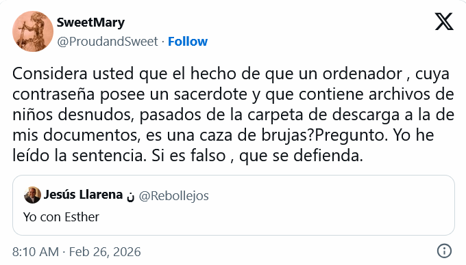 Lo que estos tuits revelan no es una mayoría sociológica —son minoritarios—, sino una mentalidad persistente. Una mentalidad que confunde presunción de inocencia con idoneidad pastoral automática. Que identifica misericordia con ausencia de consecuencias. Que reduce la protección de menores a una cuestión de tipicidad penal, como si la Iglesia solo debiera actuar cuando un juez la obliga.