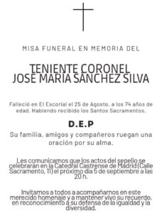 En agosto de 2025 se celebró en la Catedral Castrense de Madrid una misa funeral por el teniente coronel José María Sánchez Silva, presentado públicamente durante años como el primer militar español de alta graduación que declaró su homosexualidad. Su figura fue convertida en símbolo del activismo LGTBI dentro del Ejército, y su muerte fue acompañada de numerosos homenajes mediáticos y políticos.