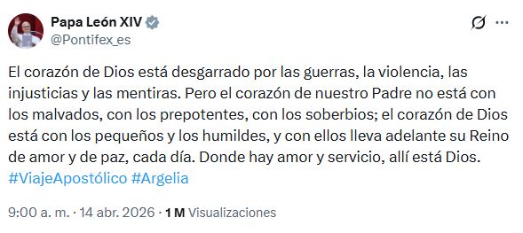 No obstante, el vicepresidente también expresó respeto personal hacia el Pontífice, señalando que lo admira y que no le incomoda que intervenga en cuestiones actuales, incluso cuando discrepa de su enfoque.