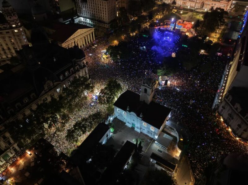 Más de 100.000 personas —y según algunas estimaciones hasta 120.000— se congregaron el sábado en la histórica Plaza de Mayo, junto a la catedral donde Jorge Mario Bergoglio fue arzobispo, para participar en un acto que combinó música electrónica con referencias religiosas.