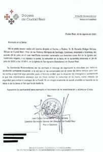 «Su Excelencia Reverendísima me ha confiado el encargo de expresarle la disculpa por haberse producido semejante situación, a la vez que se ha comunicado con el rector de dicho templo para que no vuelva a repetirse algo parecido, pues i bien e verdad que la situación de emergencia sanitaria en la que nos encontramos aconseja que los fieles reciban la comunión en la mano como medida de seguridad para evitar el contagio de la Covid19, en ningún momento se puede prohibir el hacerlo en la boca, si así lo desea el fiel que ha de recibirla»