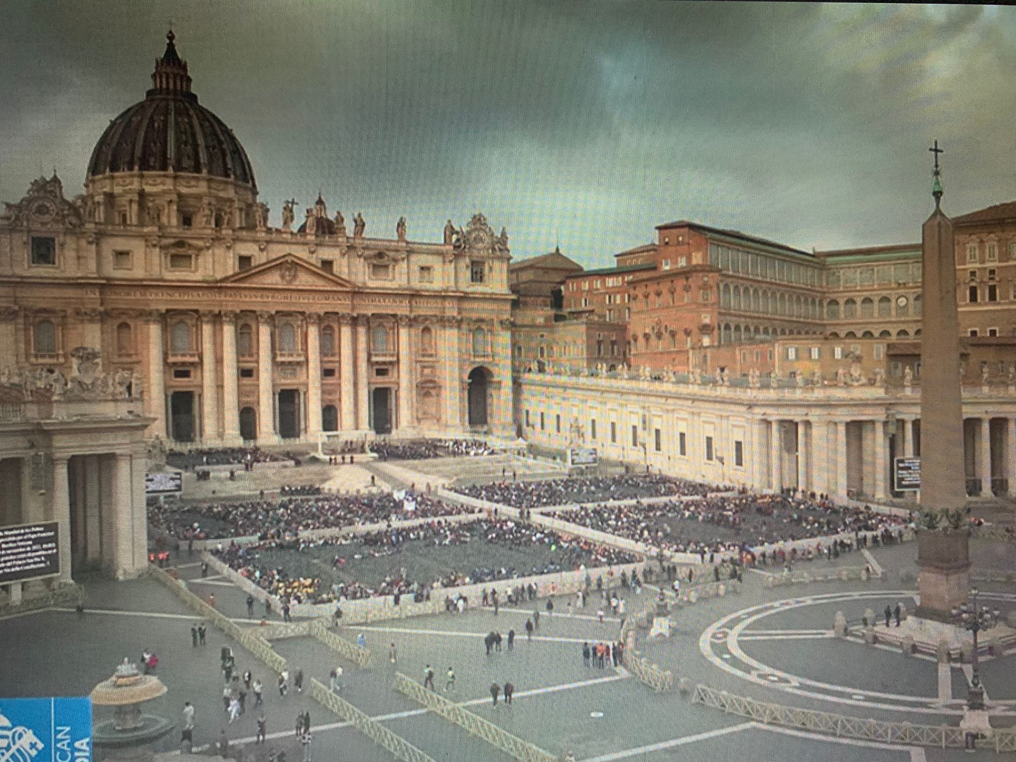 «Admirable persistencia la de los responsables de la Casa Pontificia al mantener las audiencias de los miércoles en la Plaza de San Pedro. Poco, muy poco, sabemos que la imagen que publicamos, segundos antes de entrar el Papa Francisco, no aporta mucho, lo seguimos haciendo por ser los únicos y nos parece que es una información gráfica que, dado que el Vaticano la quiere ocultar, es motivo más que suficiente para ser persistentes. Formato muy breve, pocos saludos, imágenes de movimientos del Papa Francisco controladas y nada de panorámicas generales. Un miércoles más en que el centrado obelisco queda fuera de escena, asentado en un lejano e inalcanzable horizonte.