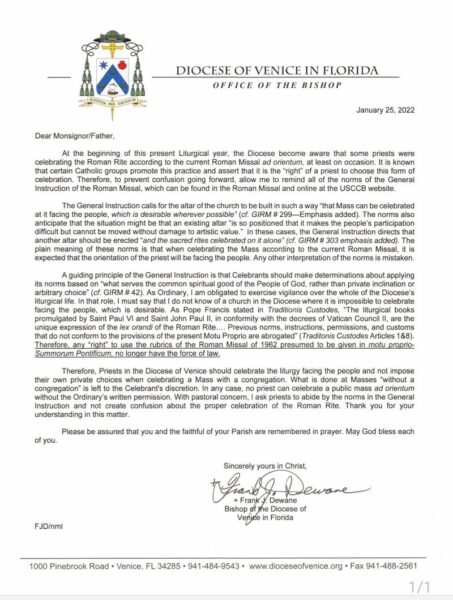 Aquí tienen el escrito con el que el obispo prohíbe las misas ‘ad orientem’ cuando haya fieles presentes: