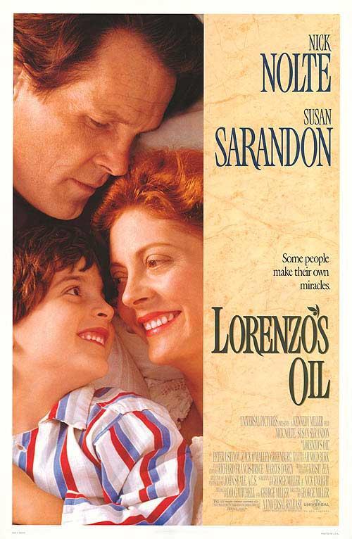 Curiosamente, esta cinta fue dirigida por el australiano George Miller, autor de la imprescindible saga de Mad Max (a la sazón, una trilogía), donde nos había ofrecido su dura visión del mundo que nos aguarda en un más que posible futuro violento y distópico (en lo que al comportamiento humano se refiere, por supuesto). Y es que, después de haber flirteado con la comedia negra (Las brujas de Eastwick), y tal vez desazonado por su propia concepción del mañana (que había suavizado no obstante en la tercera entrega de su saga futurista), quiso presentarle al mundo un motivo de esperanza. Para ello, eligió la historia real de Augusto y Michaela Odone, un matrimonio italoamericano que, como hemos indicado en el párrafo precedente, despertó a la comunidad médica mediante su lucha contra la enfermedad de su hijo: la adrenoleucodistrofia, o ALD. Ciertamente, el tesón de estos esposos por el bienestar de su retoño fue tan grande que ambos consiguieron elaborar una medicina que hoy previene la citada enfermedad: el aceite de Lorenzo (por ser este el nombre de su hijo), o el aceite de la vida, como señala el título español del film.