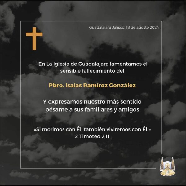 Tras la desaparición del padre Isaías Ramírez González, de quien nada se sabía desde el 15 de agosto, este domingo, el arzobispo de Guadalajara, cardenal José Francisco Robles Ortega, informó, a través de sus redes sociales, del hallazgo sin vida del presbítero.