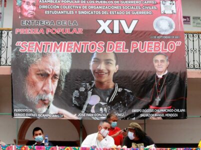 Esta fue la 14 edición de la presea “Sentimientos del Pueblo” como un galardón paralelo entregado por la Asamblea popular de los Pueblos de Guerrero, la Dirección Colectiva de Organizaciones Sociales, Civiles, Estudiantiles y Sindicatos del Estado compitiendo con el reconocimiento oficial Sentimientos de la Nación entregado por los Poderes del Estado en la Catedral de la Asunción en Chilpancingo, sede episcopal de Salvador Rangel Mendoza; sin embargo, este año fue concedido en el edificio del Poder Legislativo debido a que la catedral no se ha sido verificado como lugar seguro después del sismo del 7 de septiembre de 2021 que azotó la costa del Estado de Guerrero.